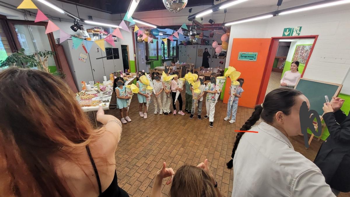 Dank der Unterstützung des Jugendamts Charlottenburg-Wilmersdorf und einer einmaligen, sehr großzügigen Spende konnten wir über Jahre hinweg in kleinen Gruppen arbeiten – mit viel persönlicher Zuwendung und hoher fachlicher Qualität. Viele Kinder konnten bei uns sehr schnell Deutsch sprechen und so gestärkt in die Schule starten. Und natürlich gab es zum Abschied auch Schultüten – denn diese Tradition ist den Eltern oft fremd, für die Kinder aber ein leuchtender Moment auf dem Weg in einen neuen Lebensabschnitt.