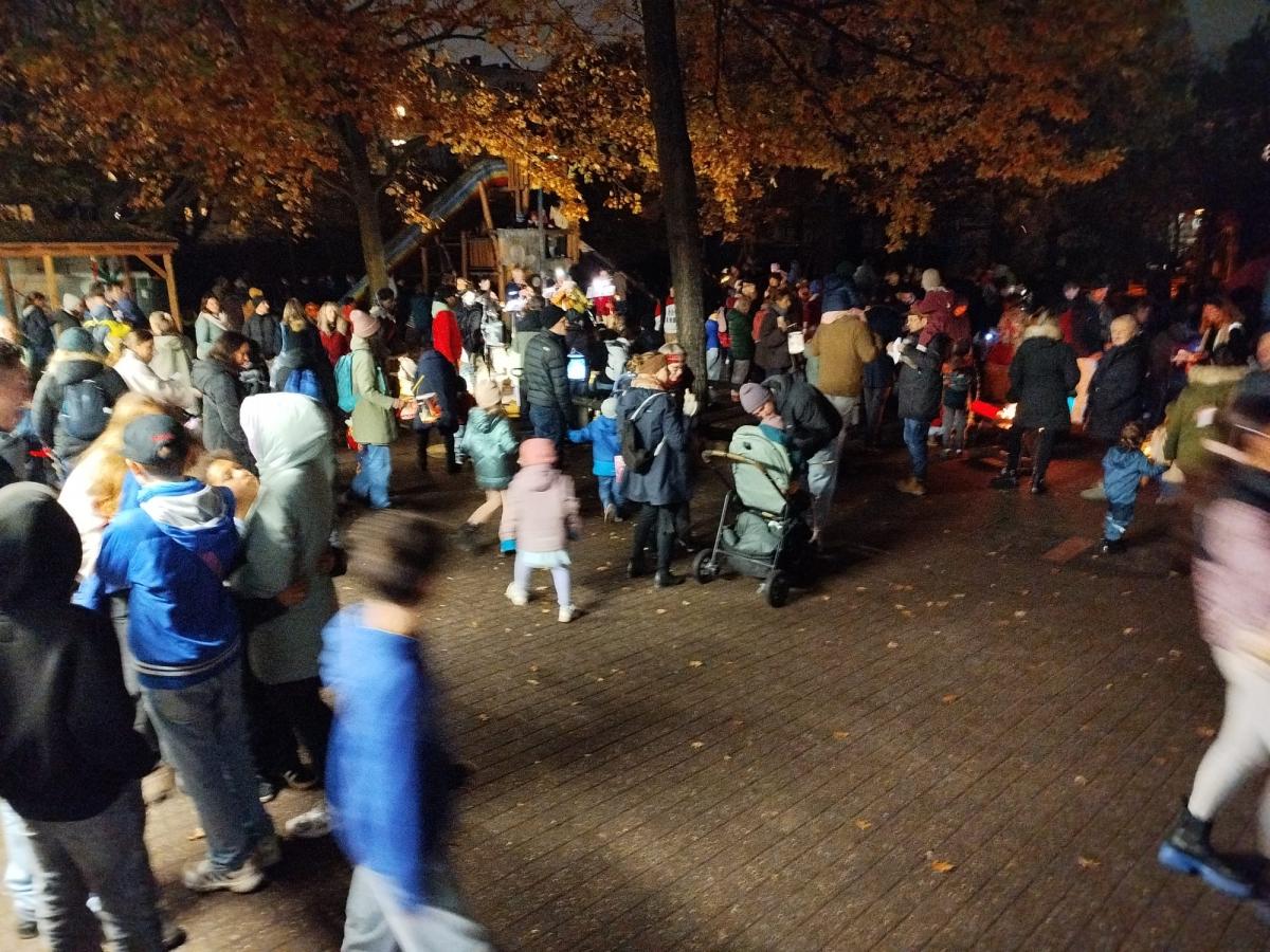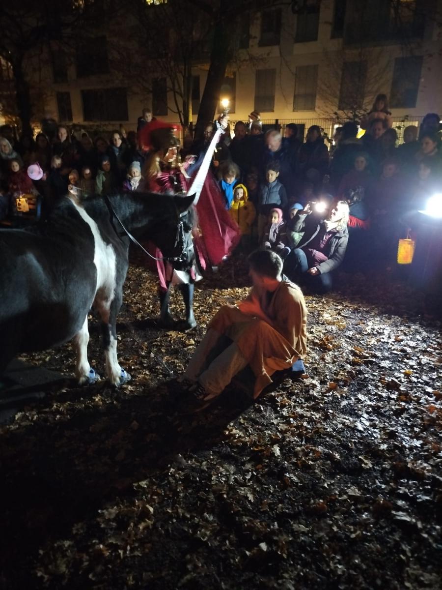 Am Spielhaus warteten Lagerfeuer, Glühwein und ein kleines Schauspiel – und das Fazit des Abends: geteilter Mantel, doppelte Freude!